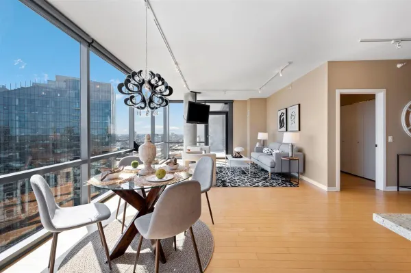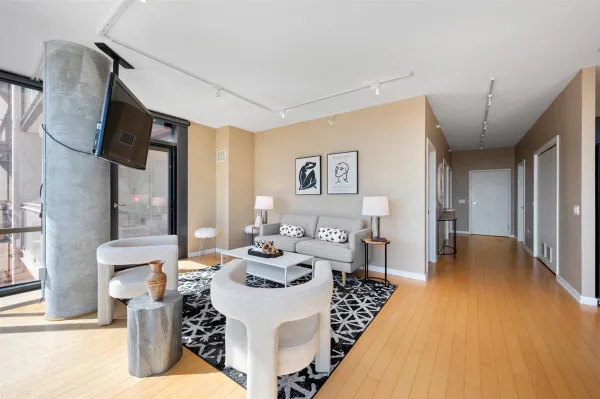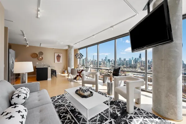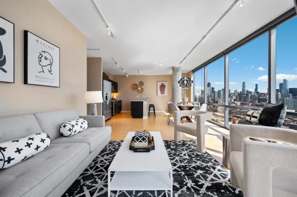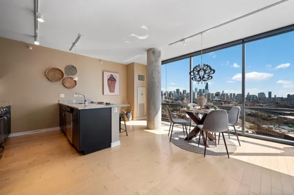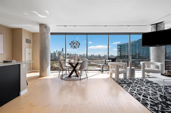 This chic high floor unit offers MAGNIFICENT, UNPARELLELED UNOBSTRUCED city views from the floor to ceiling windows in both the main living space and oversized bedroom room. Step through the gracious foyer that creates an airy expansive feeling to this 21st floor retreat. The entry also offers a massive 10 foot custom designed closet as well as added storage in the laundry closet that has a full sized, front loading washer and dryer. The beautifully designed kitchen features mocha cabinets, Impala granite, stainless appliances, gas range, disposal and dual sinks. The breakfast bar provides added prep space as well as extra seating and storage. The entire unit is comprised solid surface flooring and is complimented by 10 foot ceilings. The gracious entry into the bedroom has a second 10 foot custom designed closet and space for a dressing table or dressers. Custom remote operated electric solar shades have been installed in the bedroom. Solar shades are also found in all windows in the main living space. The flexible floor plan provides for generous sized furnishing. The bathroom is oversized with a tub/shower combination and large vanity with drawers and extra storage. A spacious private covered terrace offers stunning views and is perfect for outdoor relaxation during warmer months. Seller thoughtfully added a Phantom screen door to the balcony to let the fresh air in and keep the bugs out! Ideally situated, this residence provides easy access to the Red Line, the huge Whole Foods, Apple store, Old Town and a wide variety of retail and dining options. The unit transfers with indoor parking and additional storage. Residence also enjoy access to a professionally equipped fitness center, 24 hour door staff and management on site. Additionally, there is a controlled lighting system for centralized, customizable home illumination.
