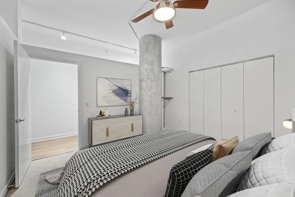 Incredible Lincoln Park oversized loft with southern exposure at world class SoNo! This extensively upgraded, 1137 square foot residence showcases soaring 10' ceilings, expansive floor-to-ceiling windows and an exceptionally spacious south-facing terrace (19'x7') Well-appointed chef's kitchen with modern cabinets, stainless steel appliances, granite countertops and under-mount sink. Gorgeous spa like bath with white Carrarra marble floors, countertop and surround. Custom lighting, Freshly painted and an abundance of storage and is situated directly across from a beautiful park to enhance the overall appeal. The building offers top-notch amenities, including a 24-hour door person and one of the best condo gyms in the city. Conveniently located near Whole Foods, the Apple store, Mariano's, shopping, restaurants, and all the attractions of New City. 1 Prime Parking space is included in the price.
